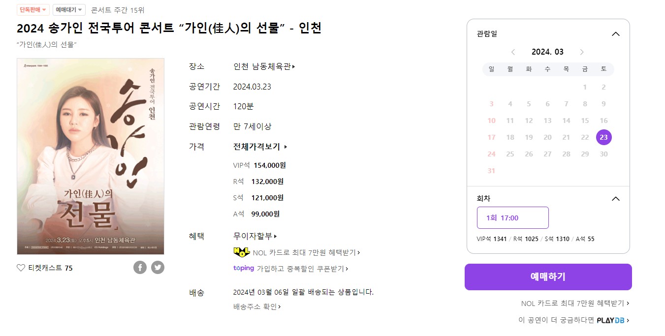 √ 송가인 콘서트 예매