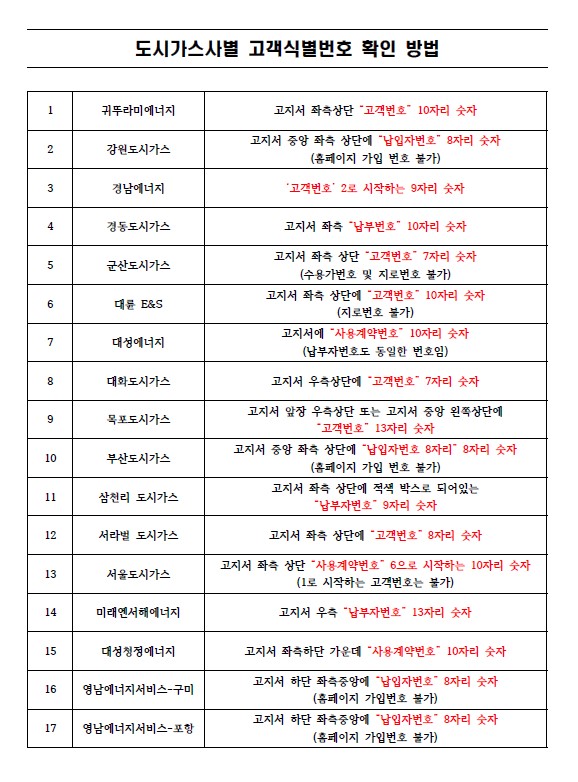 가스회사마다 보는 방법이 다르니 확인해보세요^^