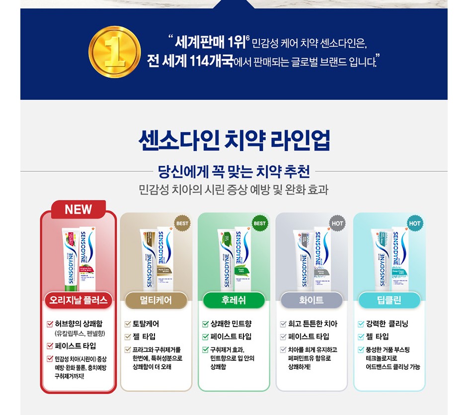 요즘 나오는 민강성 치약이 많은데 주된 성분과 기능은 비슷하므로 민감성 치약을 꾸준히 사용해주시는것이 중요하지 어떤 치약의 기능이 탁월하다고 볼 수는 없을 것같지만 저희는 센소다인 치약을 추천드리고 있고