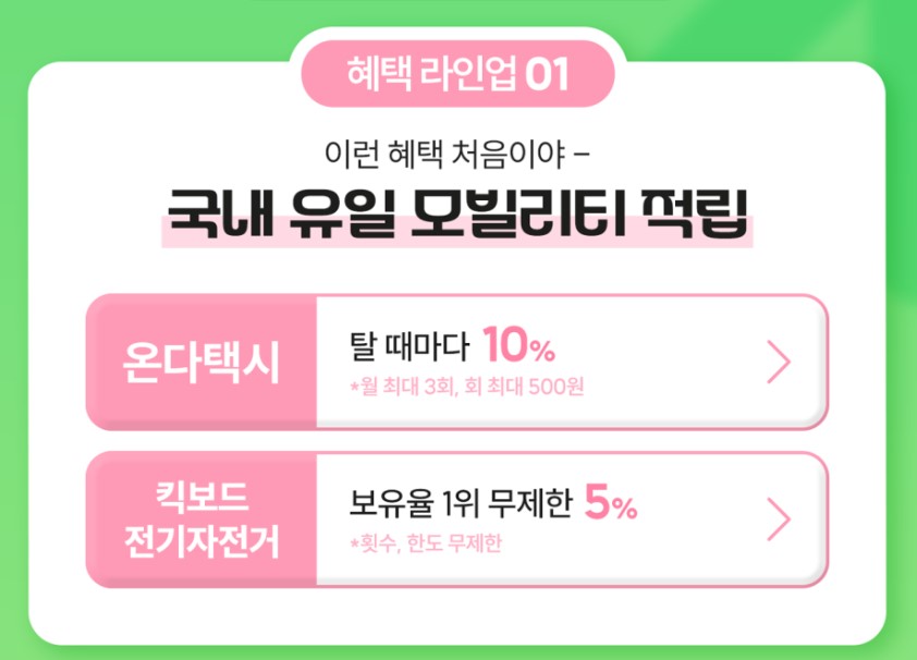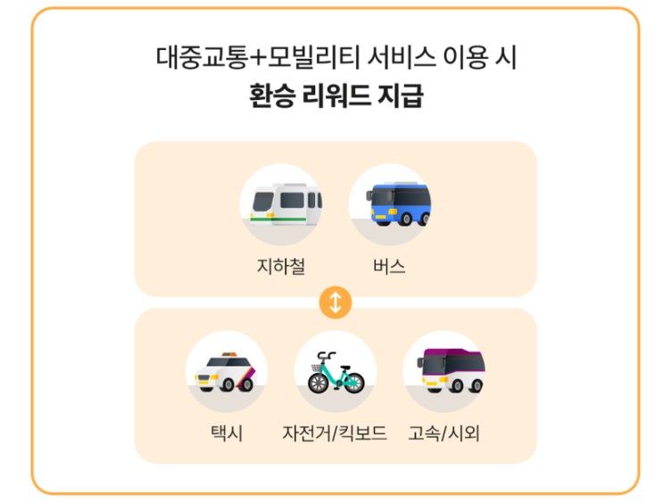 버스+택시+자전거+킥보드 모두 함께 적립되고 같이 사용할 수 있습니다.