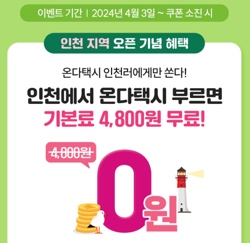 인천지역은 4월 3일부터 기본료 무료 이벤트를 합니다.