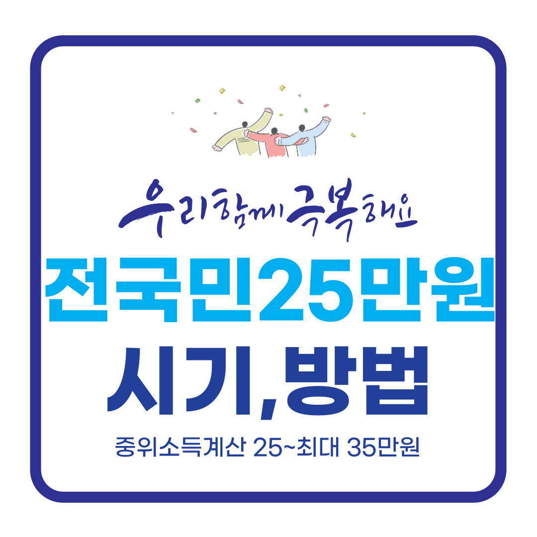 | (1) 국민에게 1인당 25만원에 해당하는 금액 지급 (2) 단, 교정시설 또는 치료감호시설에 수용되어 있는 사람은 제외 (3) 외국인이라도 일정 요건을 충족하는 사람은 지급 |