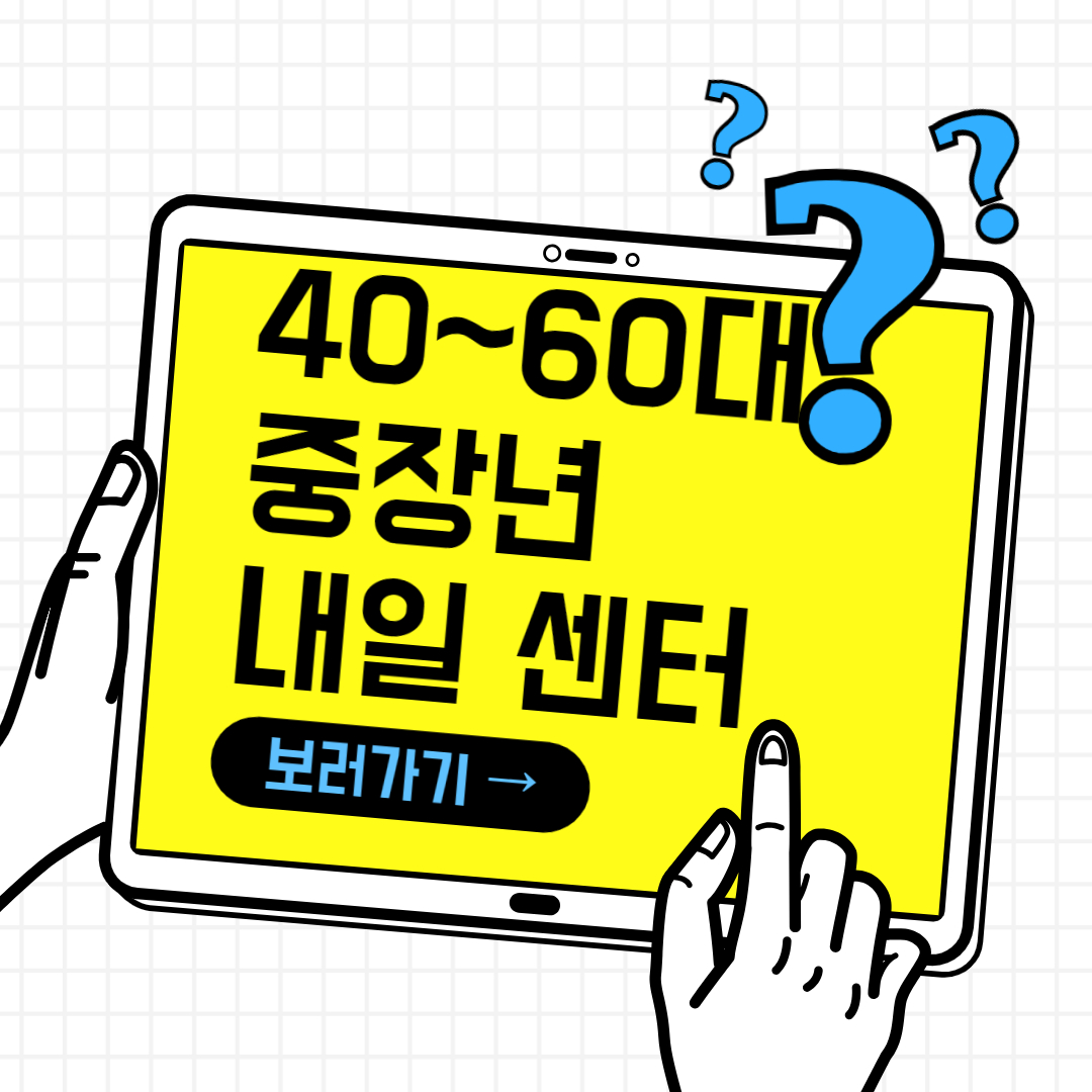 중장년 내일센터는 중장년층의 안정적인 고용을 지원하고, 이들의 재취업 및 경력 전환을 돕기 위해 설립된 기관입니다. 40~60대의 많은 분들이 중장년 내일센터에서 퇴직 전부터 준비를 알차게 하고 계십니다.