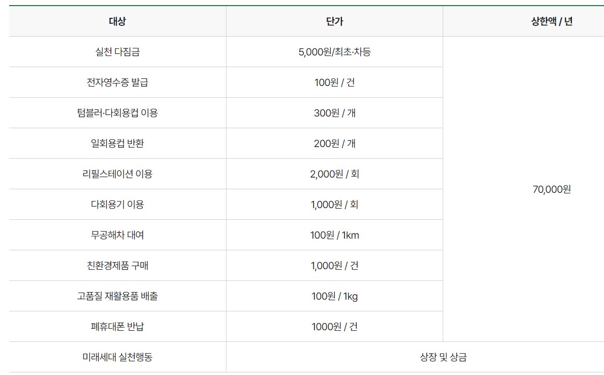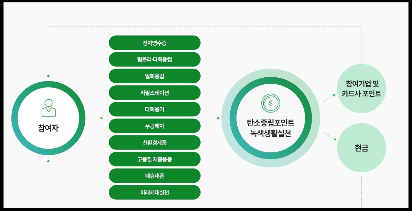 국민이 탄소중립을 위하여 생활에서 친환경 활동을 할 수 있게 나라에서 독려하는 차원으로 현금을 지급해주고 있습니다.