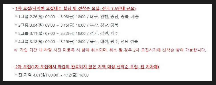 * 전 지역 4.01(월) 09:00 ~ 4.12(금) 18:00