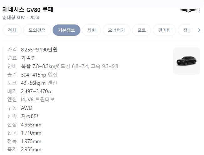 GV80 쿠페는 다른 시리지와 차별성이 확실히 있습니다.